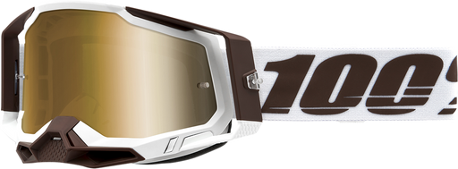 View full details100% Racecraft 2 Goggles - Snowbird - True Gold Improved fitment and seal with increased field of view Dual injected, wide outriggers for a bala...