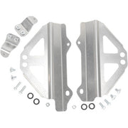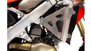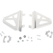 Made from highly-durable 5052 aluminum, the Works Connection Aluminum Radiator Braces provide a rigid mount directly to your frame to keep your radiators from getting damaged during an impact or crash. The braces easily bolt on during installation and fit with your stock radiators and shrouds for an unobtrusive look that won’t change your riding position or the dynamics of the bike.