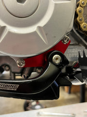 Note: The OEM plastic front sprocket cover will need to be trimmed for the shift shaft brace to fit properly. Fits fine with most aftermarket sprocket covers