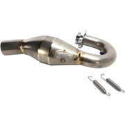 The FMF Titanium Megabomb Header Pipe uses its unique midsection profile to deliver absolutely massive low-end power with additional gains across the remainder of your power band. The Megabomb does this by creating a large surface area for exhaust expansion and sound dissipation. What this means for you is 1.5 decibels of sound reduction so you can use your new power on any track or trail you want. You can get even more sound dampening too since the Megabomb works great with sound restricting mufflers. Best of all, these benefits comes in a great looking and strong titanium construction that is lighter than almost any other header pipe out there.