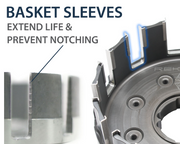 To protect and extend the life of the basket, TorqDrive includes steel lining sleeves to eliminate basket wear and notching.
